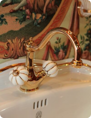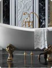 Бронзовые смесители, золотые аксессуары, унитазы в ретро стиле, классическая мебель для ванных комнат, полотенцесушители, ванны на лапах, зеркала в багетных рамах и многое другое.