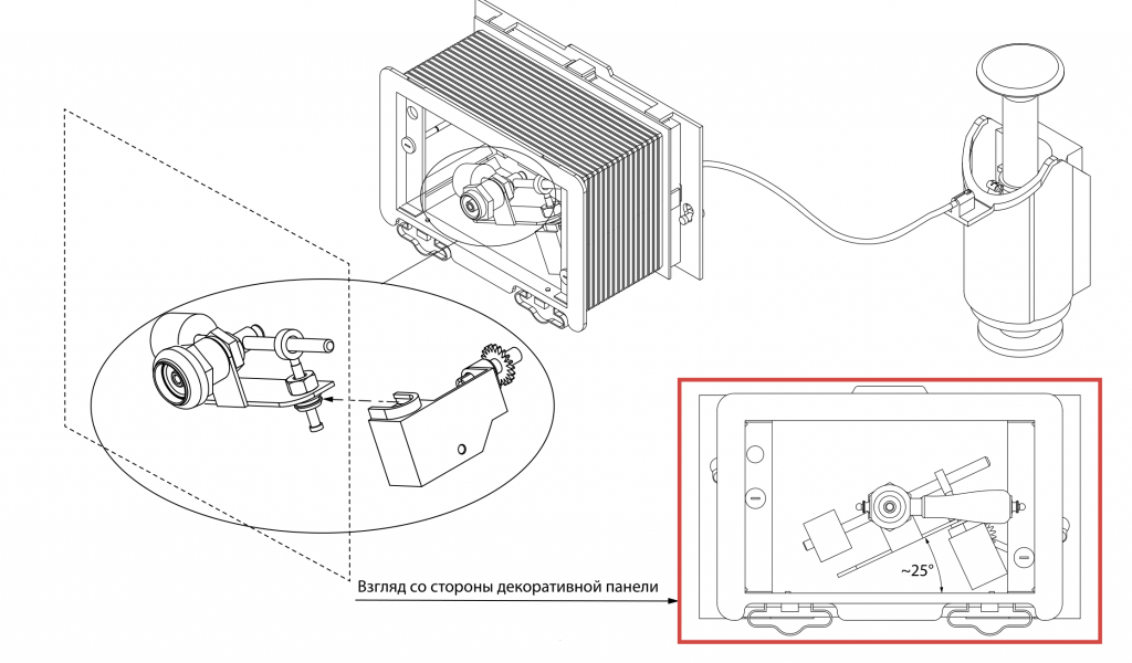 Монтажная схема декоративной панели с ручкой смыва Ottone Classic