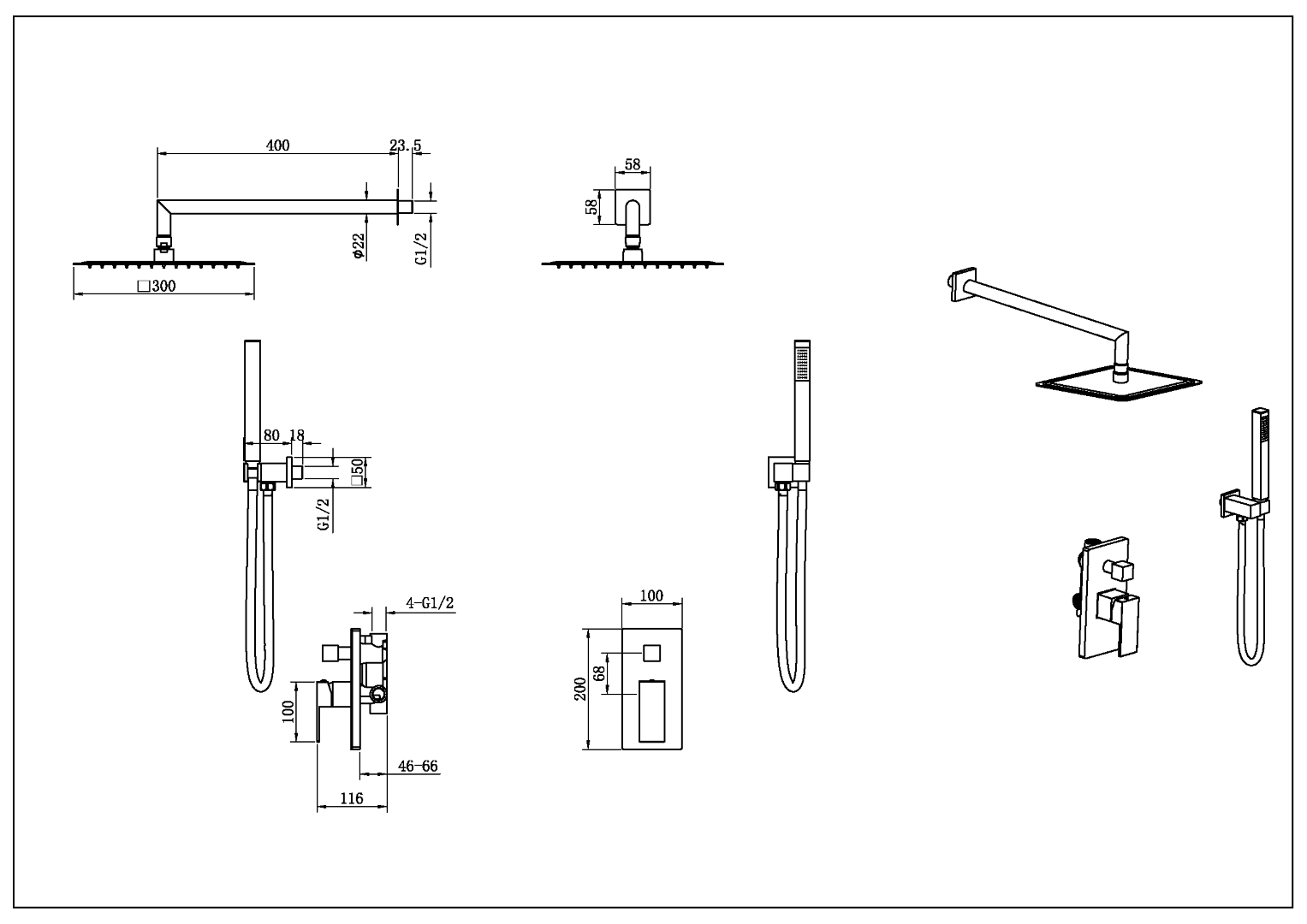 Душевая система Boheme Qubic 474-3-BRB бронза браш