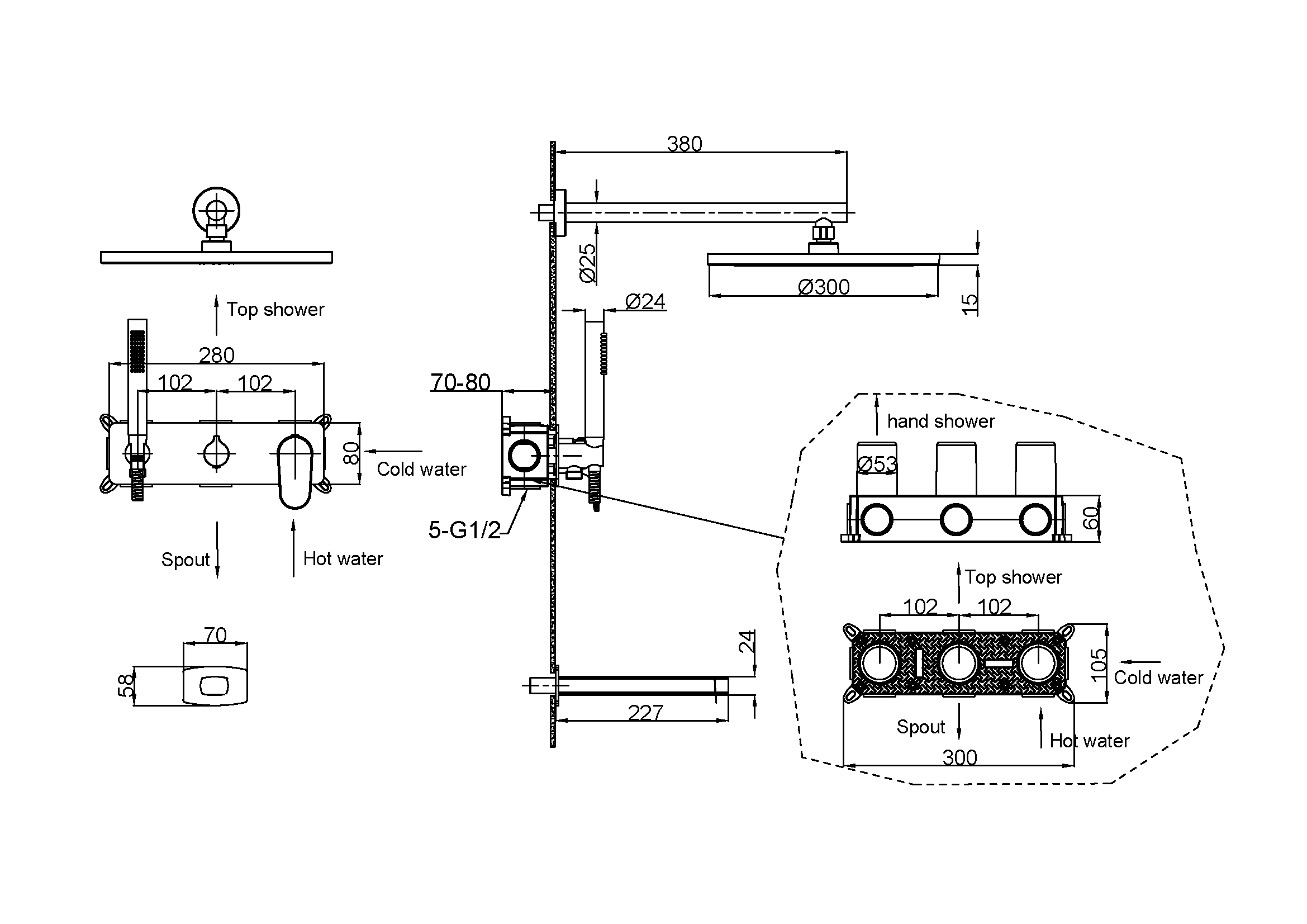 Душевая система Boheme Spectre 454-2-MG с изливом золото матовое