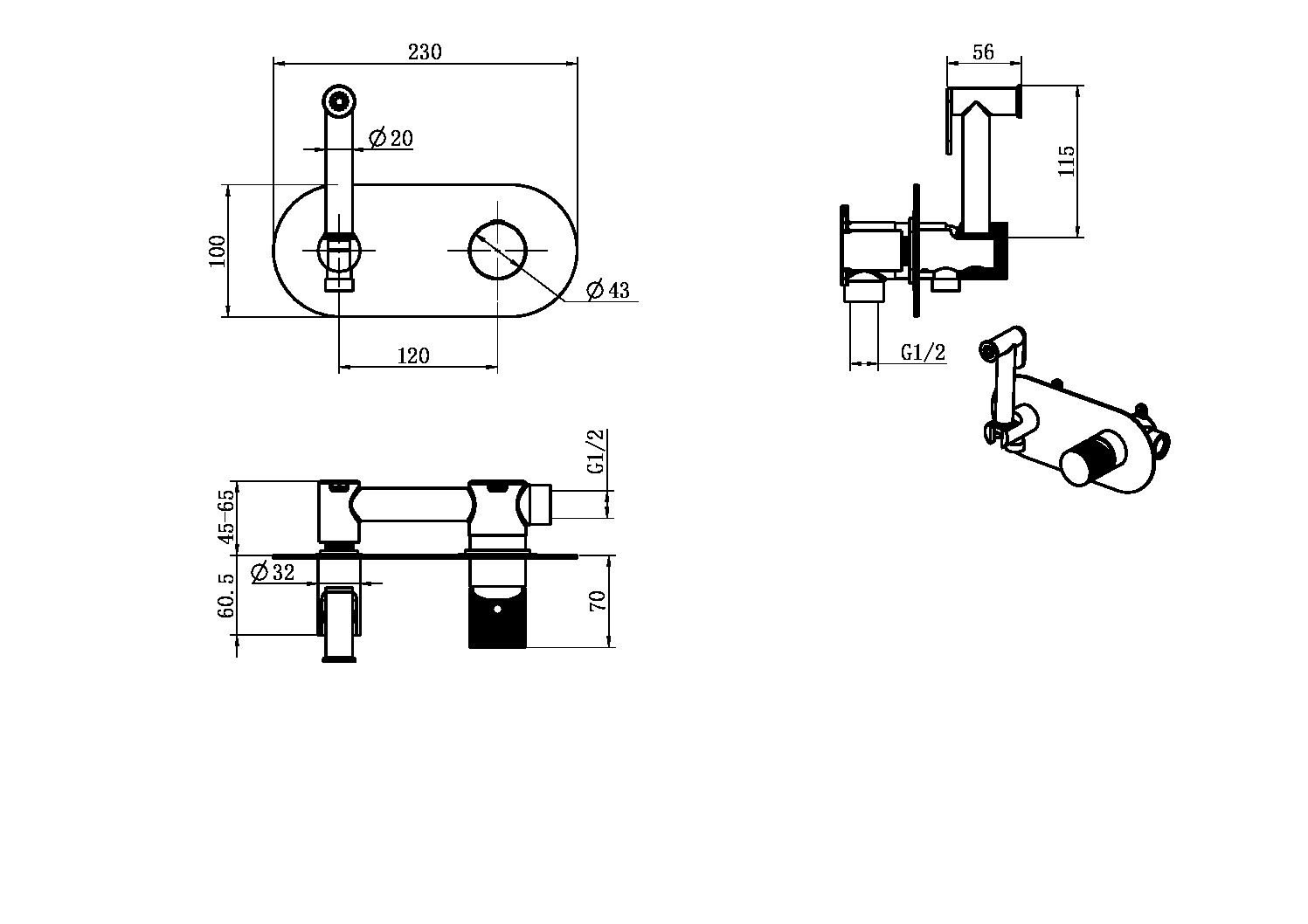 Гигиенический душ Boheme Stick 127-GG.4 со смесителем золото