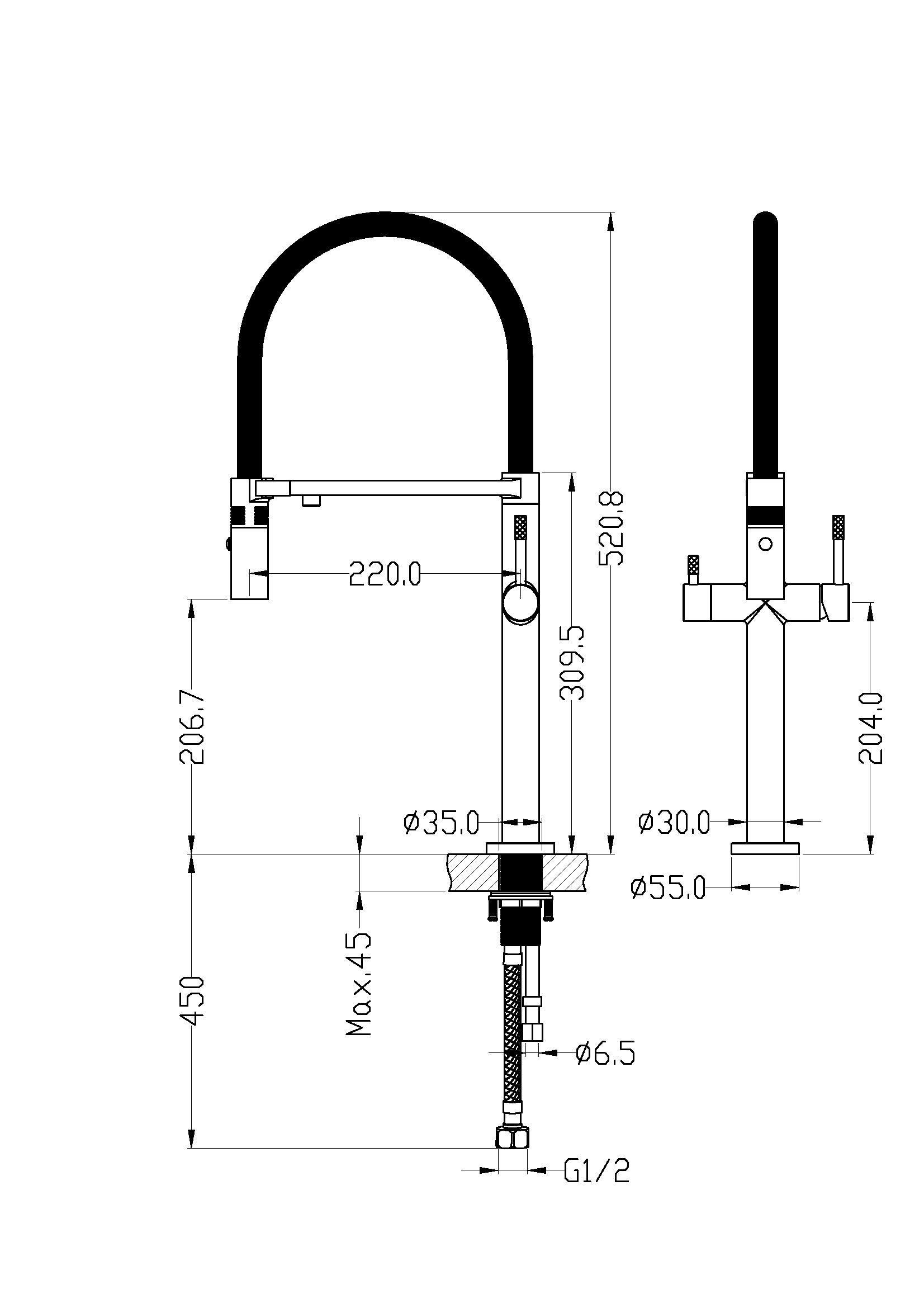 Смеситель для кухни Boheme Uno 115-SGM с краном для фильтра графит глянец