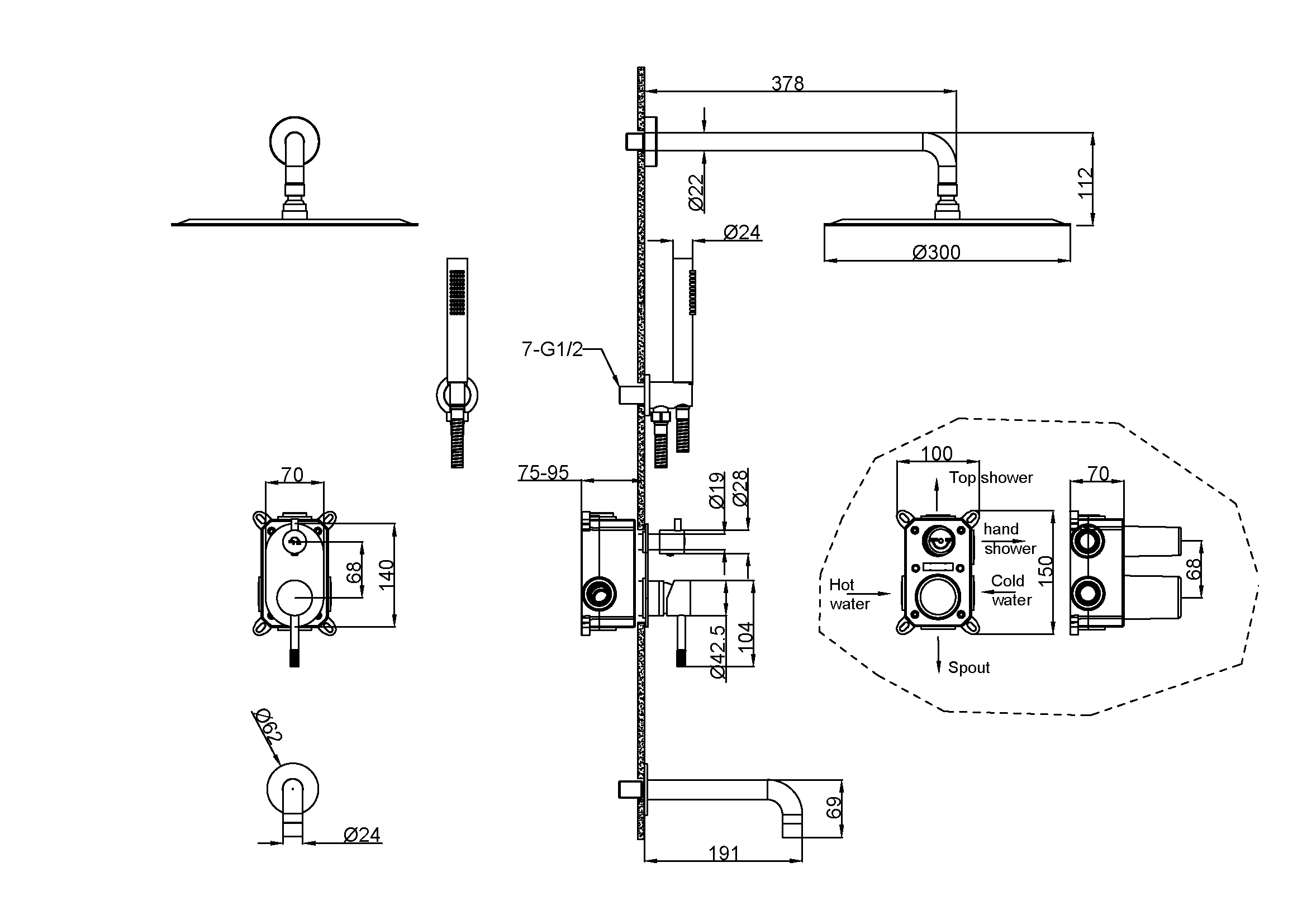 Душевая система Boheme Uno 464-2-BRB бронза браш
