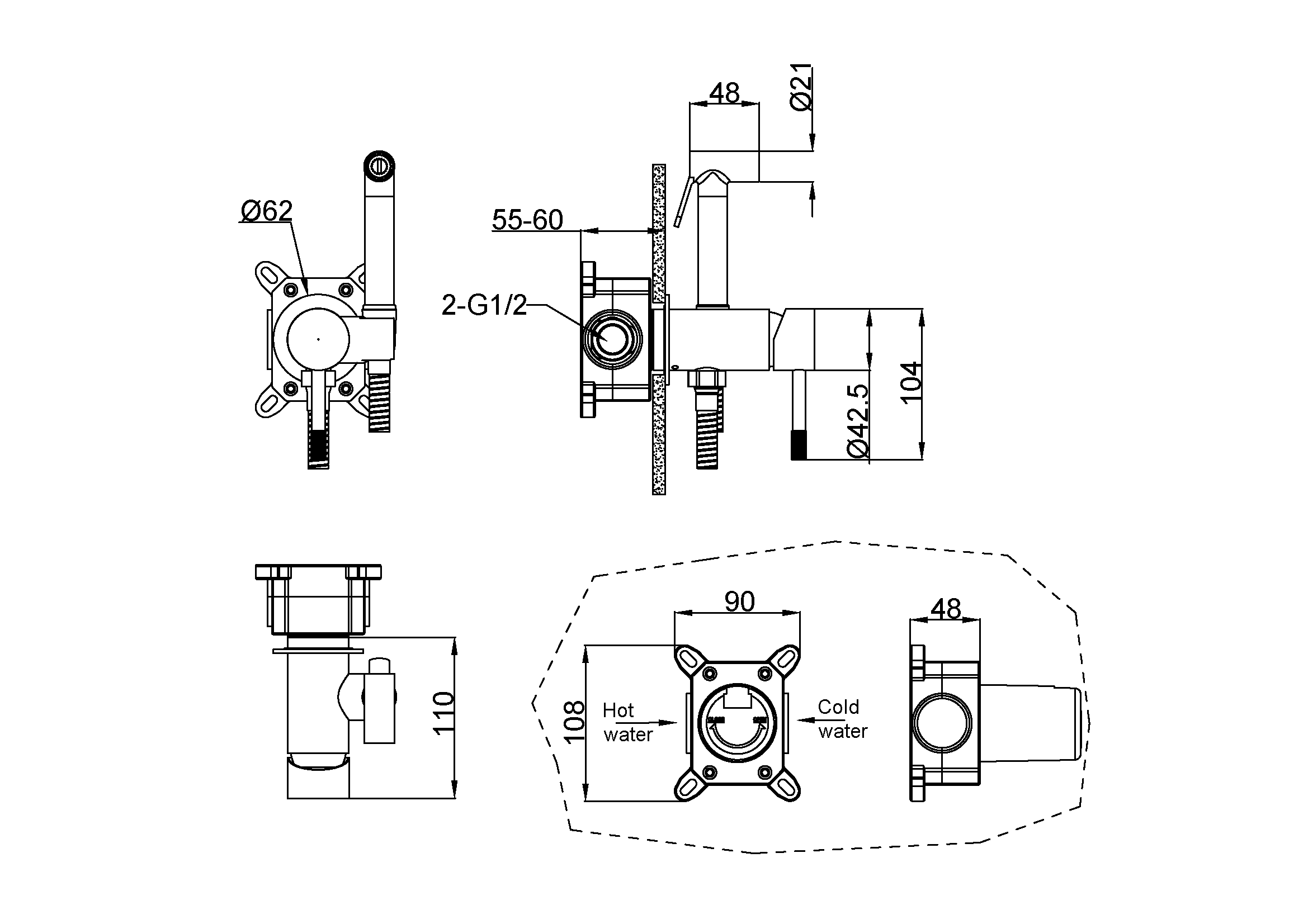 Гигиенический душ Boheme Uno 467-BRB со смесителем бронза браш