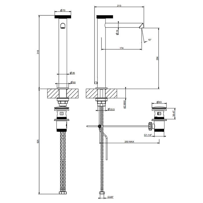 Смеситель Gessi Anello 63305#299 для раковины с донным клапаном, черный матовый