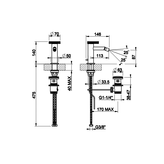 Смеситель Gessi Anello 63307#031 для биде с донным клапаном, хром