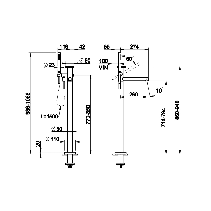 Смеситель Gessi Anello 63328#031 напольный для ванны, хром