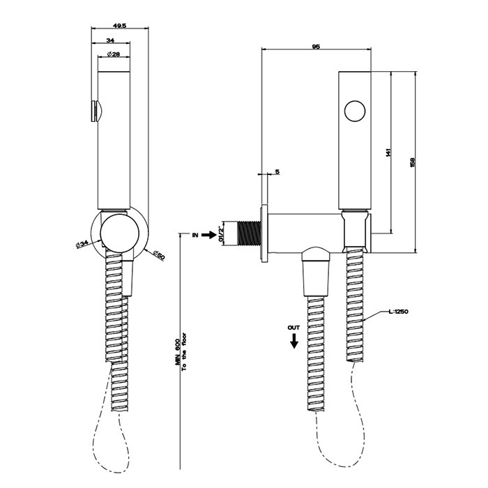 Комплект гигиенического душа Gessi Cono 45123#149, никель браш