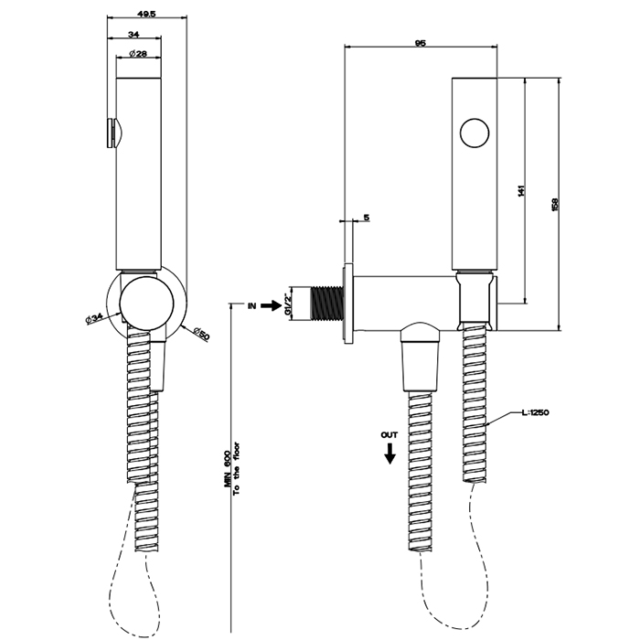 Комплект гигиенического душа Gessi Cono 45123#707, черный хром браш pvd