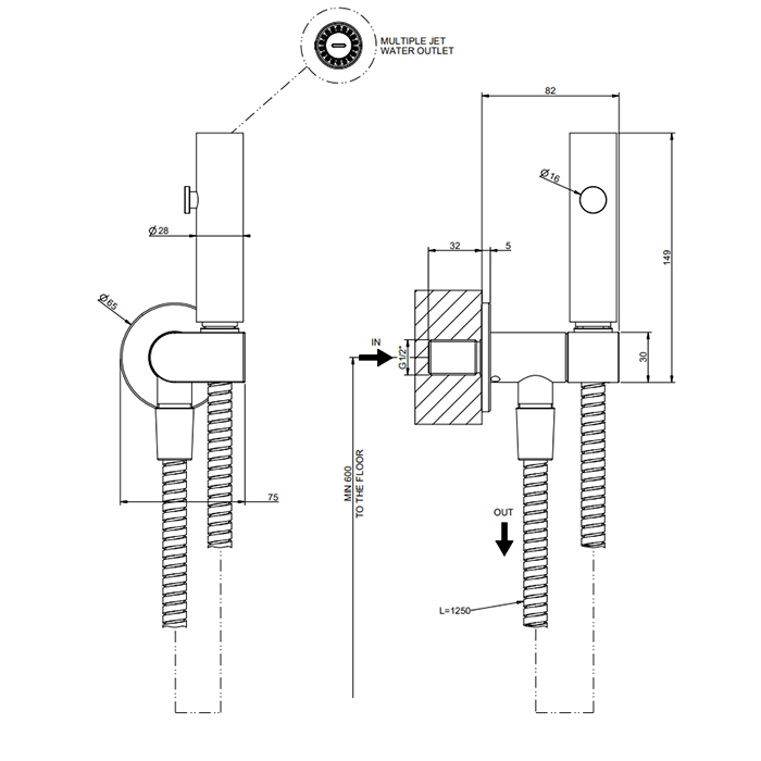 Гигиенический душ Gessi Eleganza 45124#030 с настенным держателем, медь глянец pvd