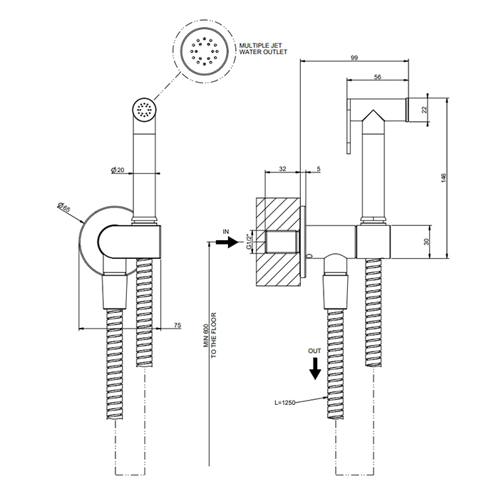 Гигиенический душ Gessi Eleganza 45126#149, никель браш