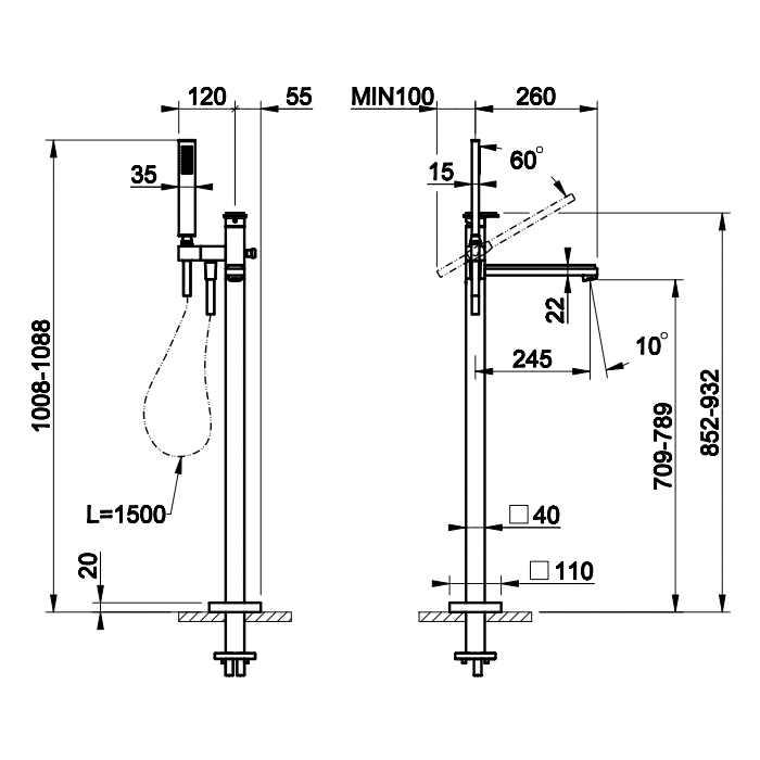 Смеситель Gessi Eleganza 46131#713 напольный для ванны, бронза