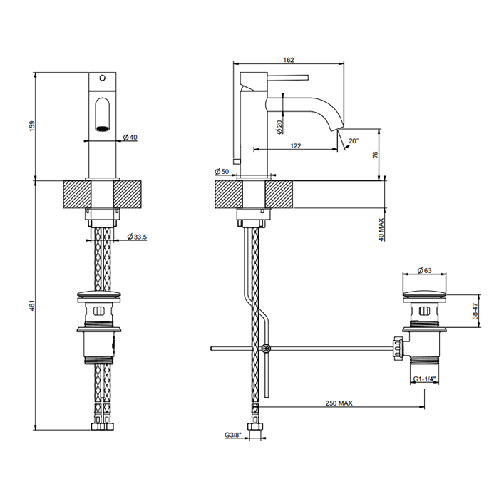 Смеситель Gessi Gessi316 54001#707 для раковины с донным клапаном, черный хром браш pvd
