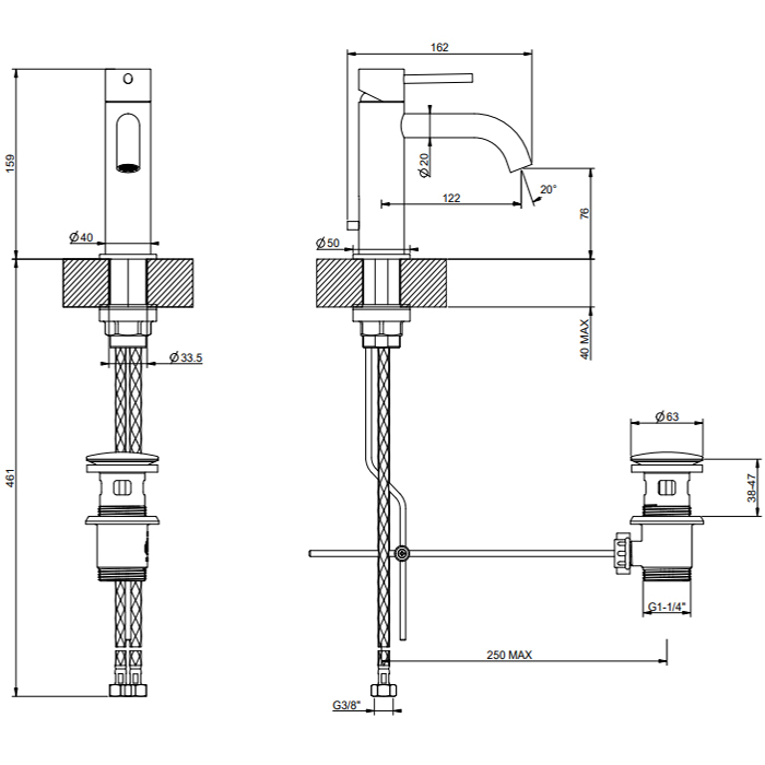 Смеситель Gessi Gessi316 54001#727 для раковины с донным клапаном, латунь браш pvd