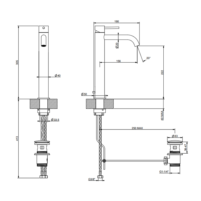Смеситель Gessi Gessi316 54003#707 для раковины с донным клапаном, черный хром браш pvd
