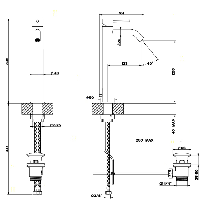 Смеситель Gessi Gessi316 54004#239 для раковины с донным клапаном, нержавеющая сталь браш