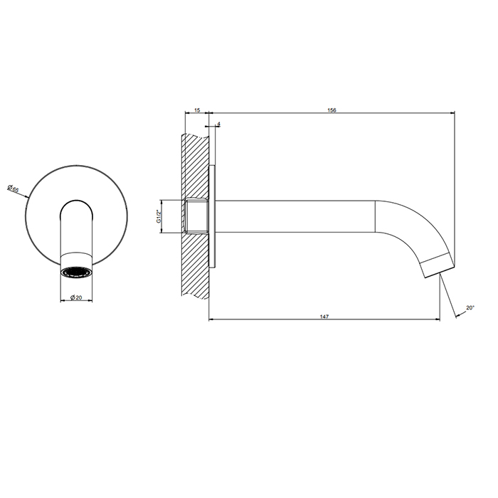 Излив Gessi Gessi316 54010#707 настенный черный хром браш pvd