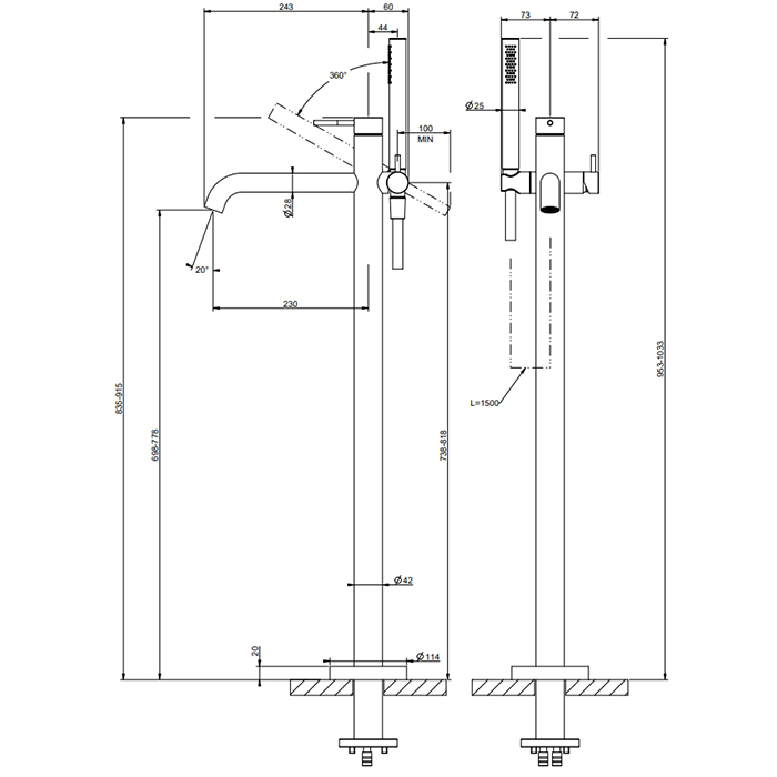 Смеситель Gessi Gessi316 54028#708 напольный для ванны, медь браш pvd