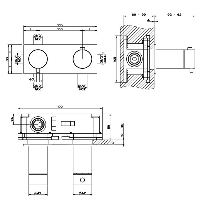 Смеситель Gessi Gessi316 54036#707 для душа термостат, черный хром браш pvd