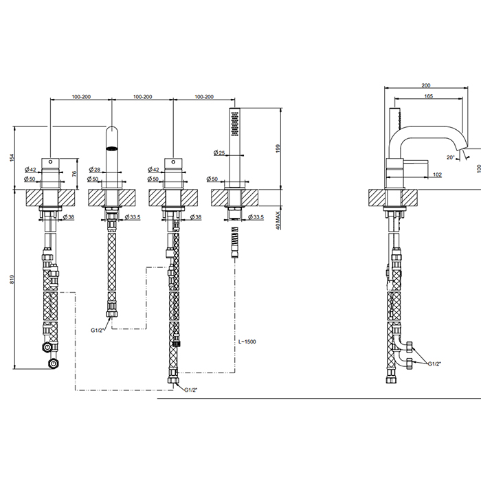 Смеситель Gessi Gessi316 54037#707 для ванны, черный хром браш pvd