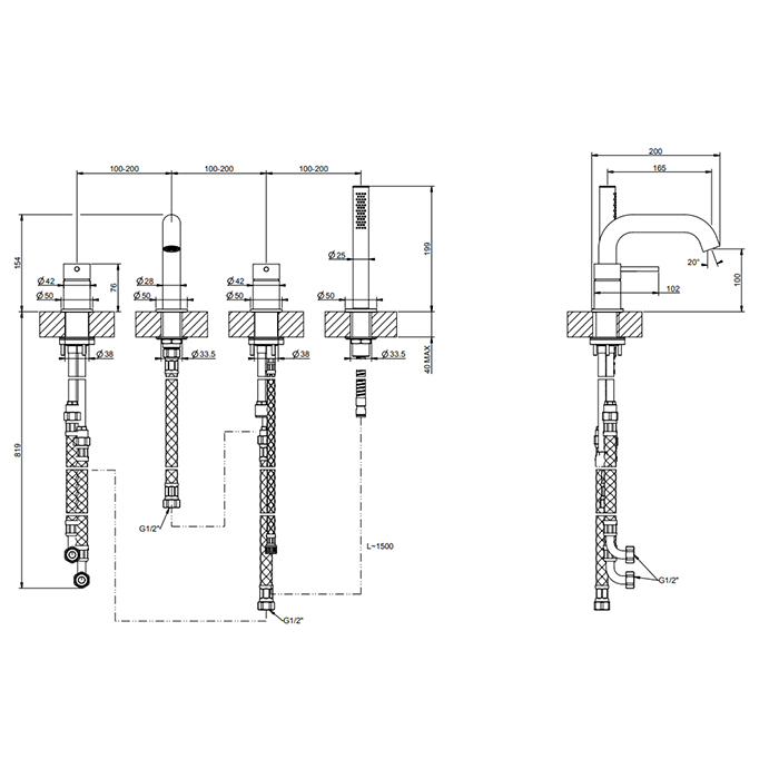 Смеситель Gessi Gessi316 54037#727 для ванны, латунь браш pvd