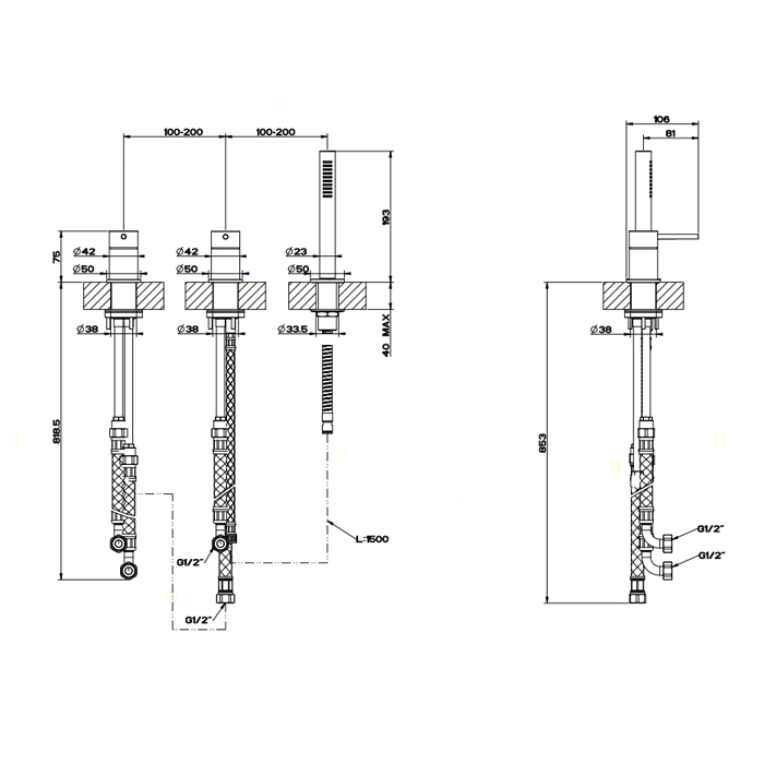 Смеситель Gessi Gessi316 54043#239 для ванны с душем, нержавеющая сталь браш