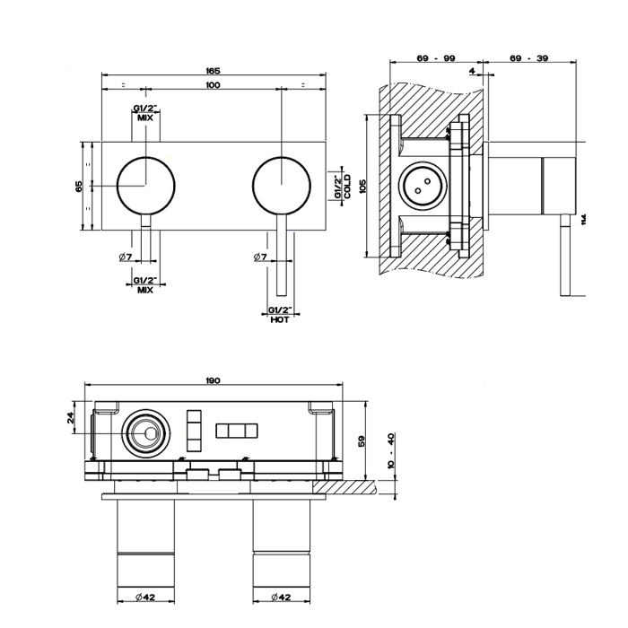 Смеситель Gessi Gessi316 54079#239 для душа, нержавеющая сталь браш