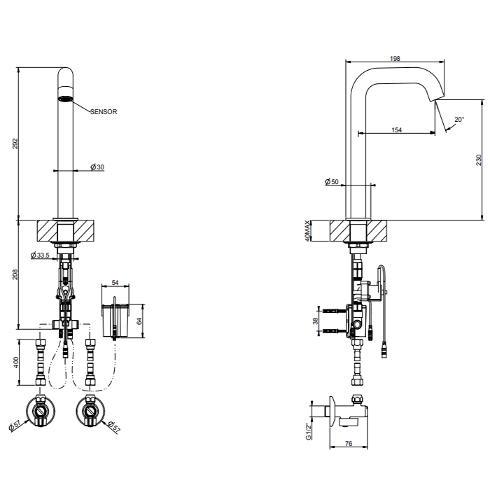 Смеситель Gessi Gessi316 54080#239 для раковины электронный, нержавеющая сталь браш