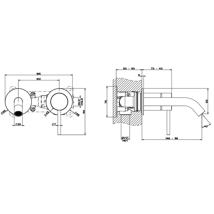 Смеситель Gessi Gessi316 54083#707 для раковины с изливом, черный хром браш pvd