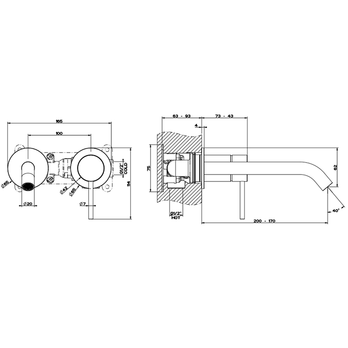 Смеситель Gessi Gessi316 54086#707 для раковины с изливом, черный хром браш pvd