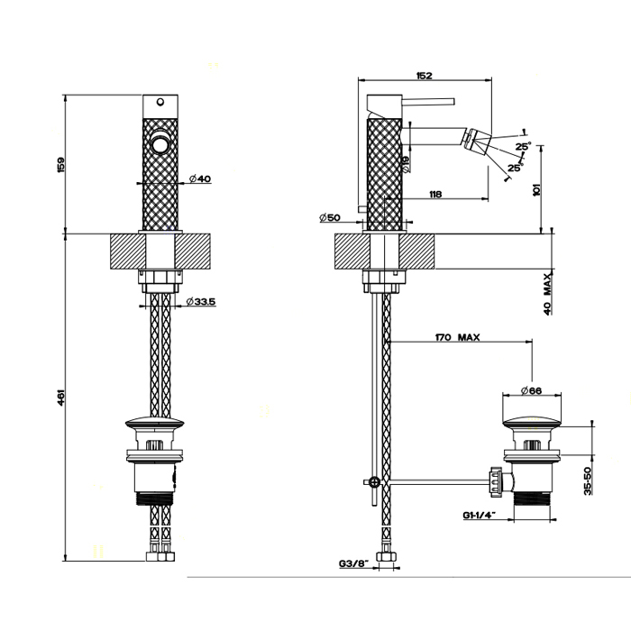 Смеситель Gessi Gessi316 54107#239 для биде с донным клапаном, нержавеющая сталь браш