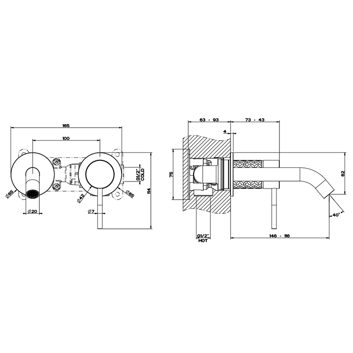 Смеситель Gessi Gessi316 54183#239 для раковины с изливом, нержавеющая сталь браш