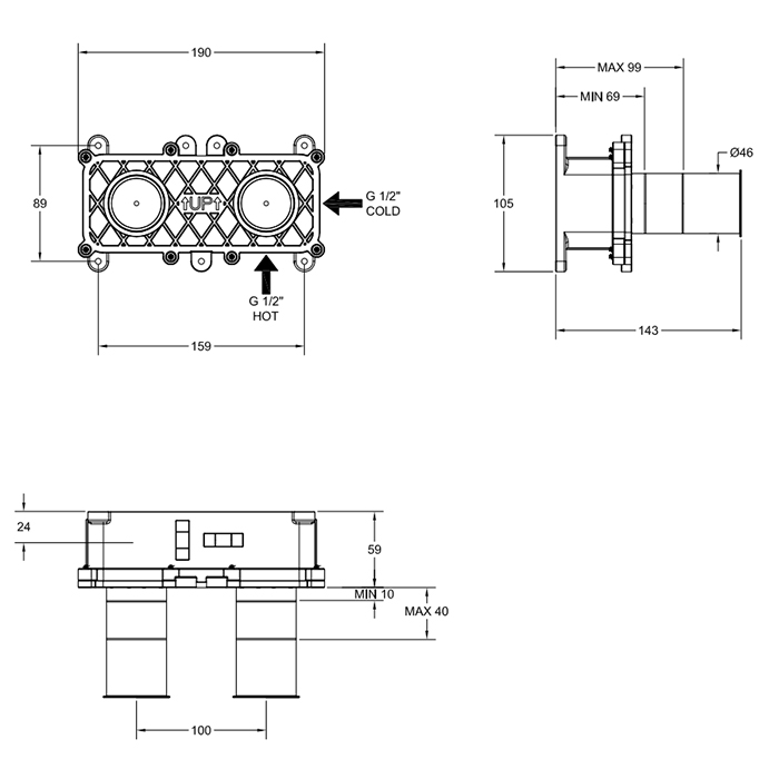 Скрытая часть смесителя Gessi Gessi316 54198#239, нержавеющая сталь браш