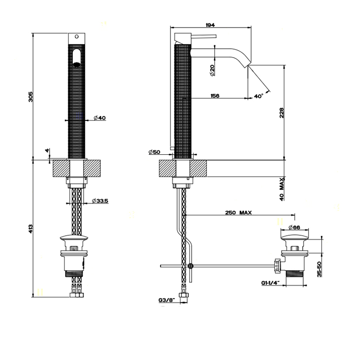 Смеситель Gessi Gessi316 54203#239 для раковины с донным клапаном, нержавеющая сталь браш