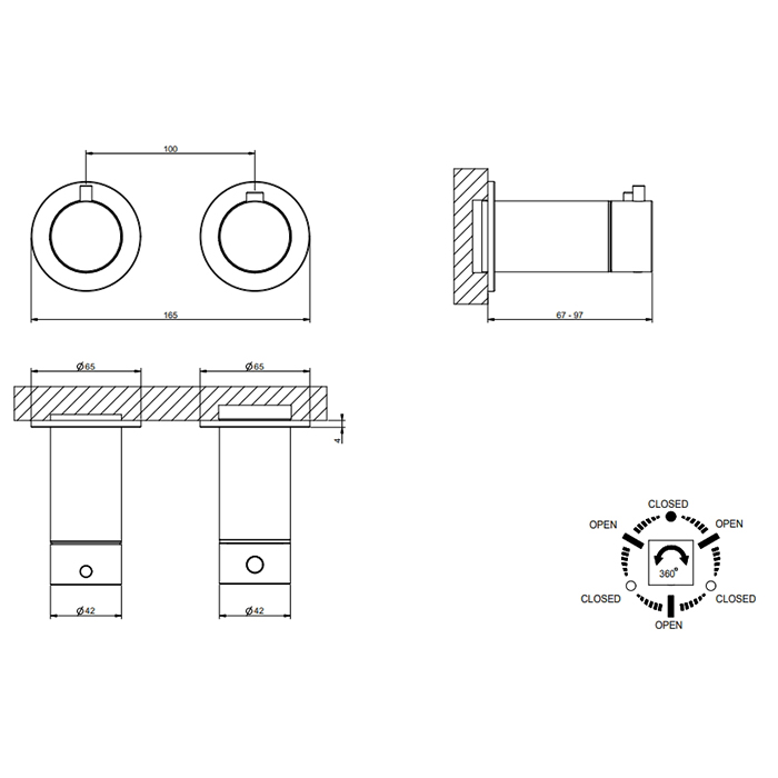 Смеситель Gessi Gessi316 54236#707 для душа термостат с переключателем на 3 потока, черный хром браш pvd