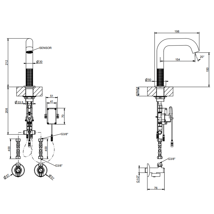 Смеситель Gessi Gessi316 54281#239 для раковины электронный, нержавеющая сталь браш
