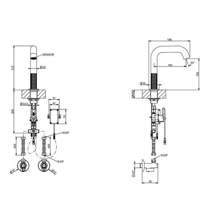 Смеситель Gessi Gessi316 54281#707 для раковины электронный, черный хром браш pvd