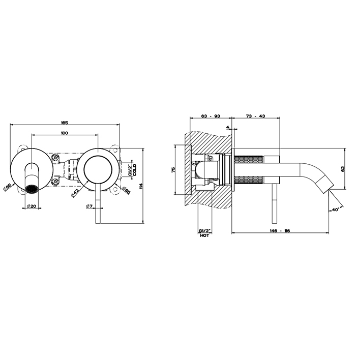 Смеситель Gessi Gessi316 54283#707 для раковины с изливом, черный хром браш pvd