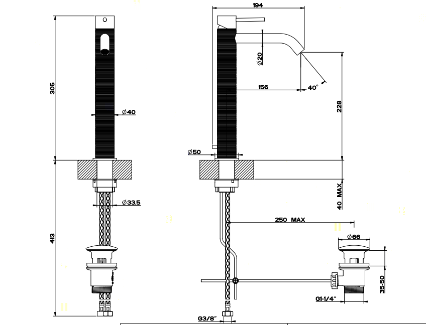 Смеситель Gessi Gessi316 54303#239 для раковины с донным клапаном, нержавеющая сталь браш