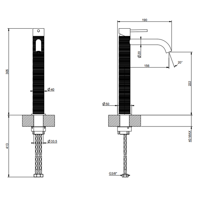 Смеситель Gessi Gessi316 54306#707 для раковины, черный хром браш pvd