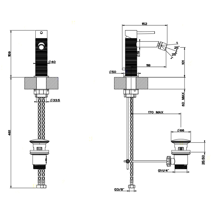 Смеситель Gessi Gessi316 54307#239 для биде с донным клапаном, нержавеющая сталь браш