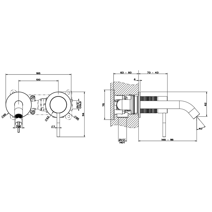 Смеситель Gessi Gessi316 54383#707 для раковины с изливом, черный хром браш pvd