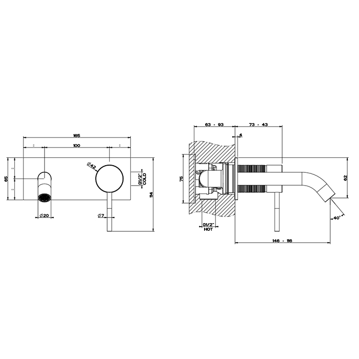 Смеситель Gessi Gessi316 54388#707 для раковины с изливом, черный хром браш pvd