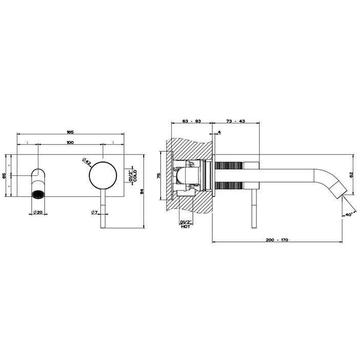 Смеситель Gessi Gessi316 54390#707 для раковины с изливом, черный хром браш pvd