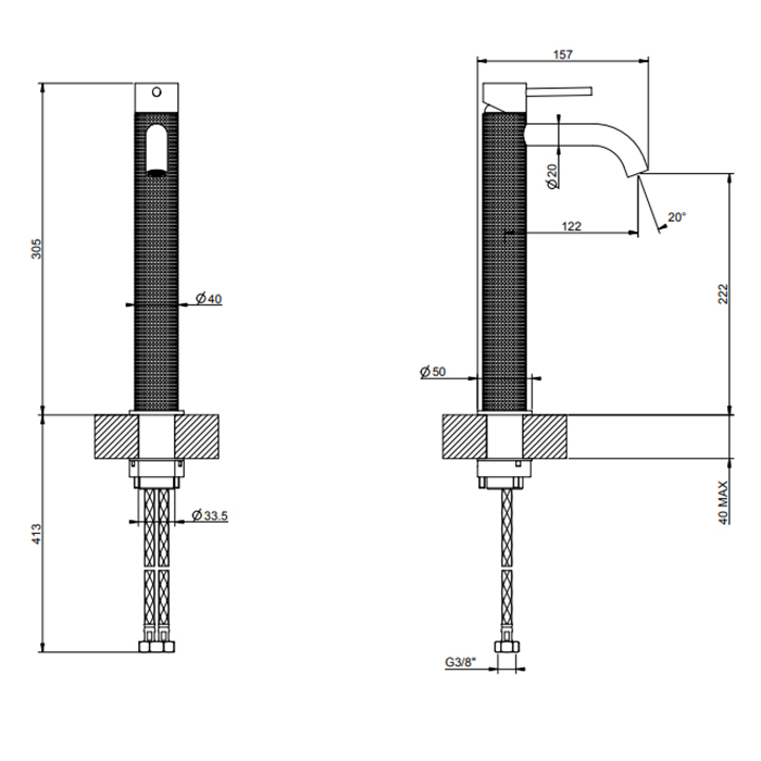 Смеситель Gessi Gessi316 54409#707 для раковины, черный хром браш pvd