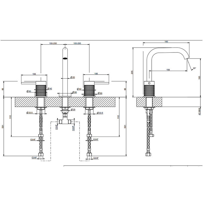 Смеситель Gessi Gessi316 54412#707 для раковины, черный хром браш pvd