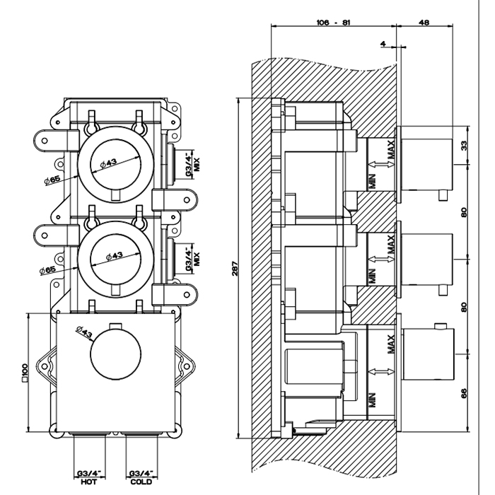 Смеситель Gessi Gessi316 54504#239 для душа термостат, нержавеющая сталь браш