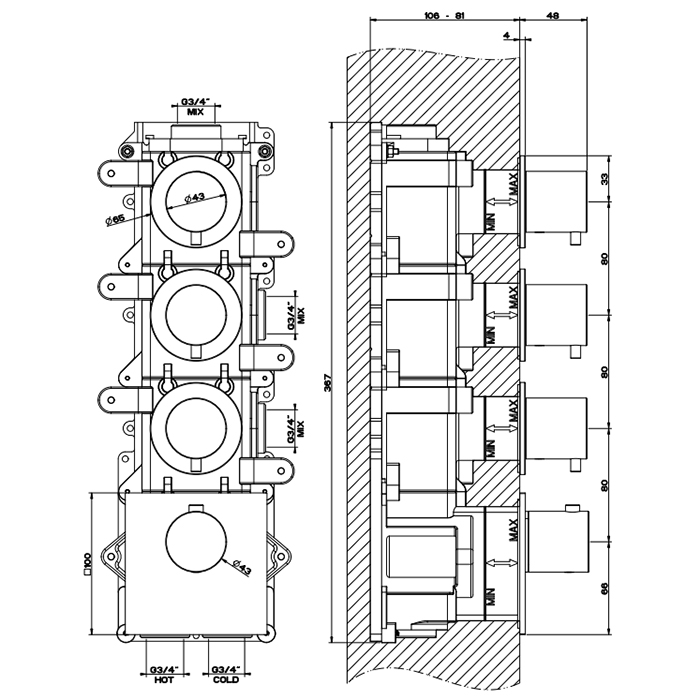 Смеситель Gessi Gessi316 54506#239 для душа термостат, нержавеющая сталь браш