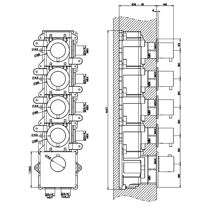 Смеситель Gessi Gessi316 54508#239 для душа термостат, нержавеющая сталь браш