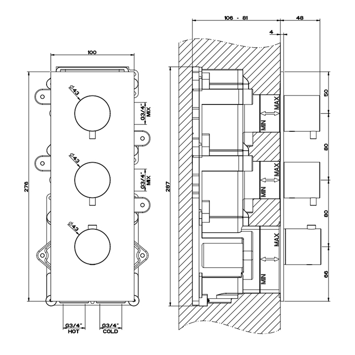 Смеситель Gessi Gessi316 54514#299 для душа термостат, черный матовый